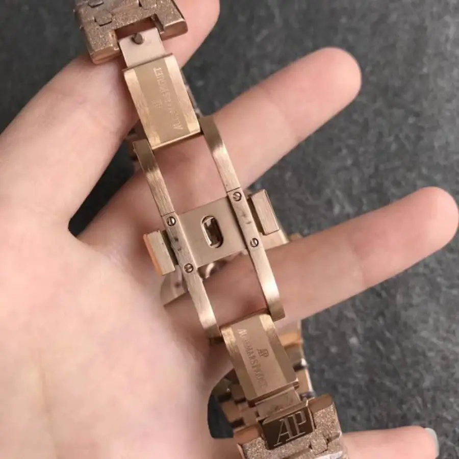 The 41 mm case is crafted from high-grade 904L stainless steel, showcasing the signature Royal Oak combination of brushed and polished finishing. Paired with the integrated stainless-steel bracelet and AP folding clasp, the watch ensures exceptional comfort, durability, and unmistakable Royal Oak presence. Sapphire crystal protection guarantees long-lasting clarity and scratch resistance.