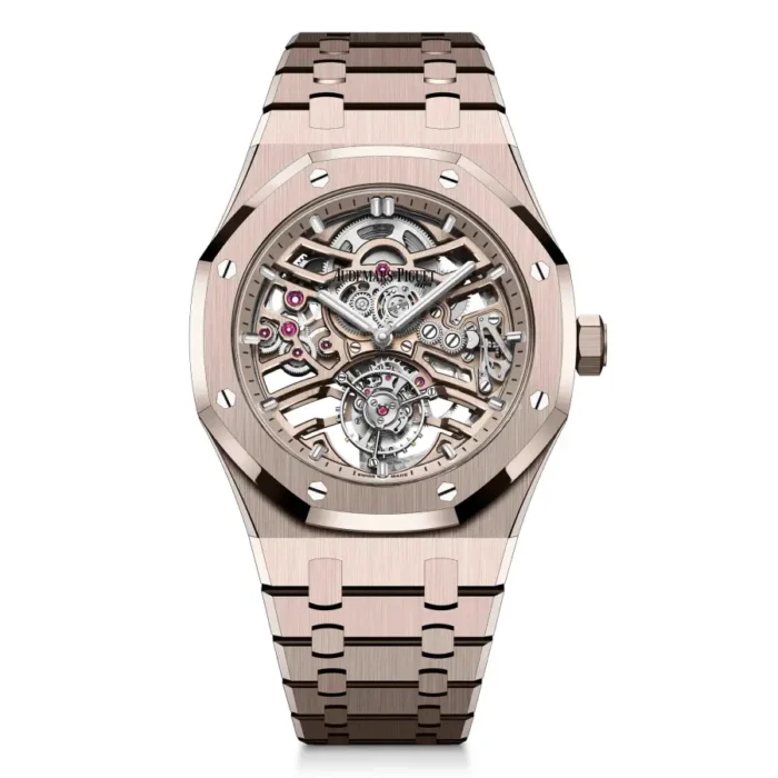 The 41 mm case is crafted from premium 904L stainless steel with a distinctive silver-toned finish, showcasing the signature Royal Oak brushed and polished surfaces. Paired with the integrated stainless-steel bracelet and AP folding clasp, the watch ensures exceptional comfort, durability, and unmistakable Royal Oak presence. Sapphire crystal protection guarantees long-lasting clarity and scratch resistance.