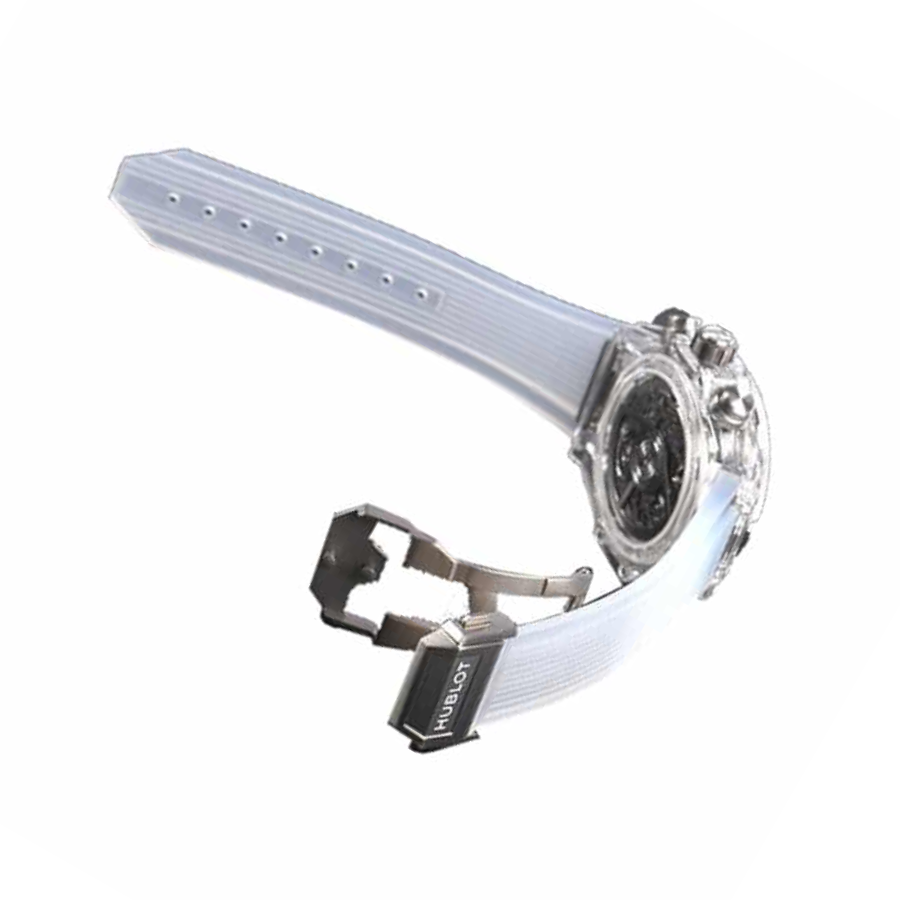 The Hublot Big Bang Unico Sapphire Rainbow 411.JX.4803.RT.4099 Replica is a luxury watch. It features a titanium case with a skeleton color and a gem-set bezel. The watch is powered by an automatic HUB1242 movement with a 60-hour power reserve and a precision of -3/+3 seconds per day within COSC certification limits. The dial is a skeleton color with mixed indices and 904L stainless steel stick hour markers and resin stick hands.
