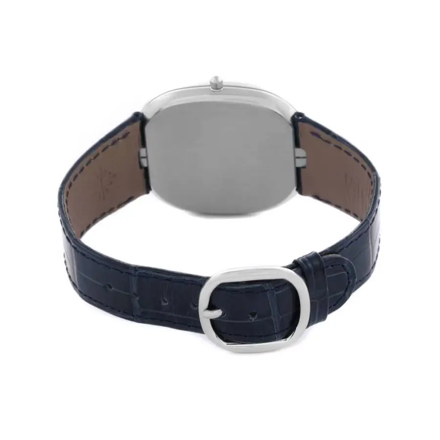 The ultra-slim case, crafted in a platinum-tone finish, reflects the distinct Ellipse silhouette—iconic for its balanced proportions and minimalist sophistication. Paired with a premium leather strap and a secure clasp, the watch offers exceptional comfort and classic dress-watch elegance. Sapphire crystal ensures long-lasting clarity and protection.