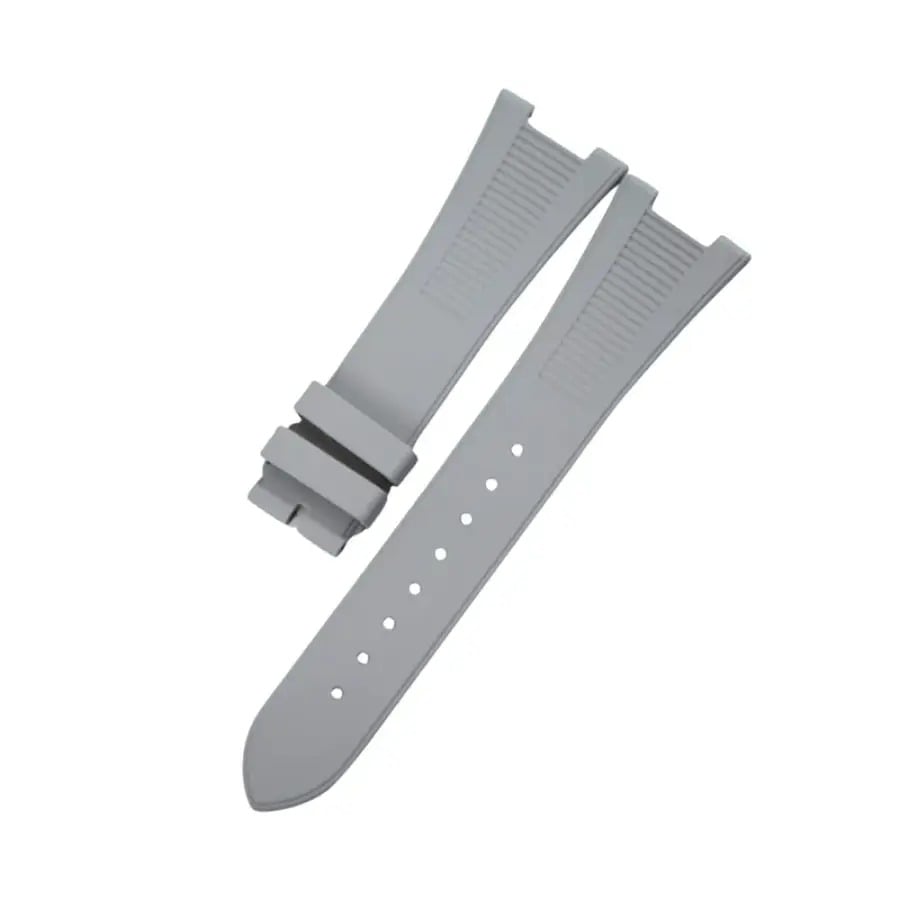The Nautilus Style Grey Rubber Strap for Patek Philippe Aquanaut is a premium replacement designed to merge Aquanaut comfort with a refined Nautilus-inspired aesthetic. Crafted from high-quality flexible rubber, it offers excellent durability, comfort, and resistance to daily wear, making it ideal for both active use and everyday styling.