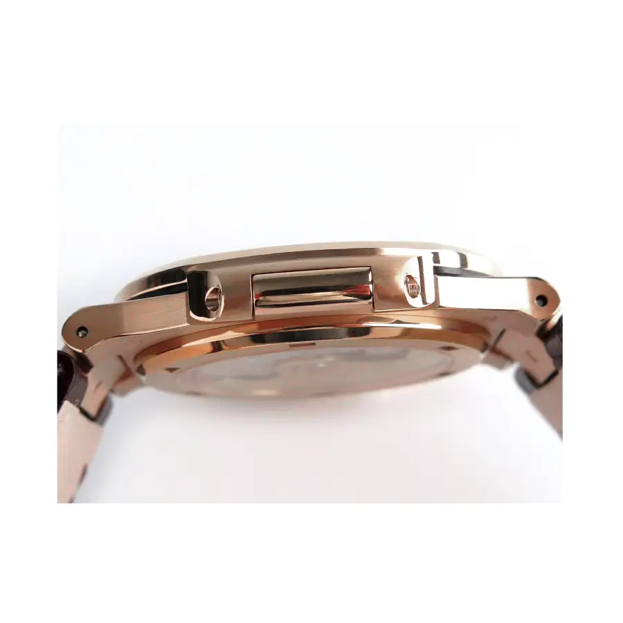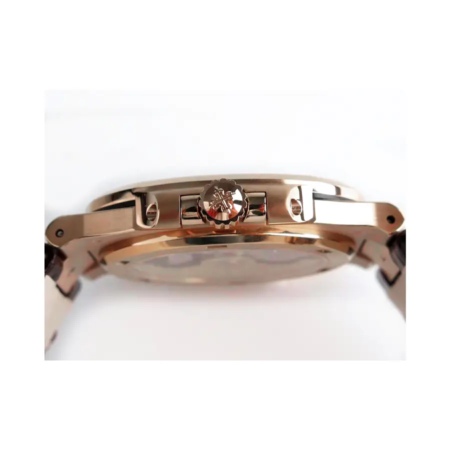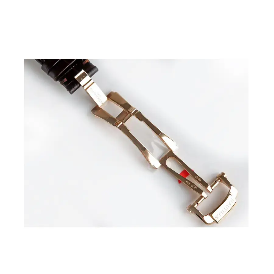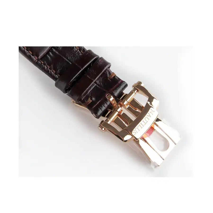 The 40 mm case features an elegant rose-gold–style finish crafted on premium stainless steel, perfectly paired with the integrated Nautilus bracelet for seamless comfort, balance, and refined wrist presence. Sapphire crystal protection ensures long-lasting clarity and scratch resistance, while the slim profile preserves the iconic Nautilus proportions.