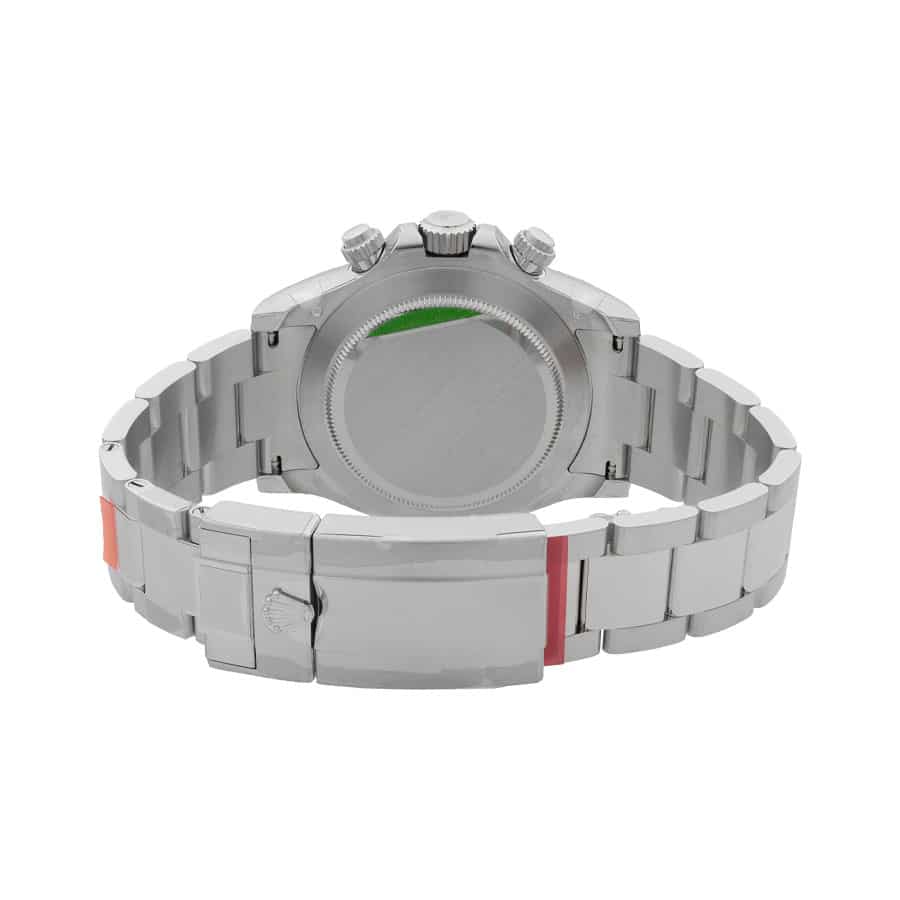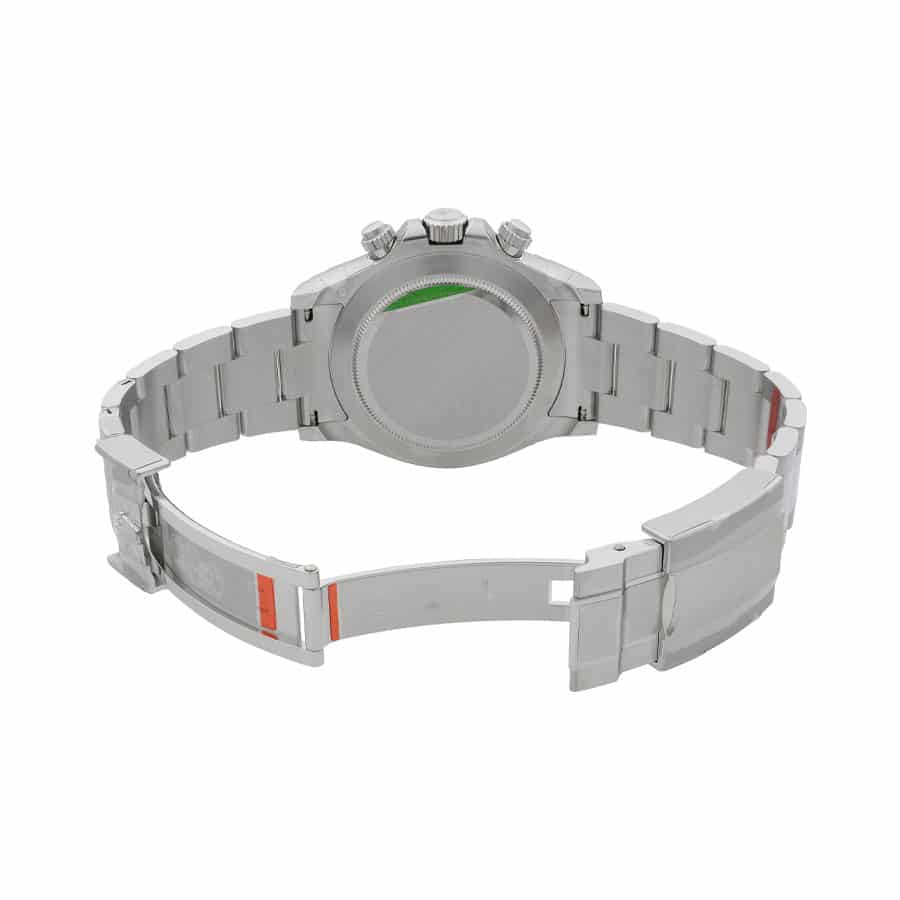 What truly sets the Rolex Daytona Cosmograph 116506 apart is its heart—the automatic caliber 4130 movement. This movement not only provides a remarkable power reserve of 60 hours but also ensures precision within -3/+3 sec/day, adhering to the stringent limits of COSC certification. Feel the robust energy of every tick as this watch keeps perfect time, no matter where life takes you. Moreover, the adjustable links ensure a tailor-fit for all wrist sizes, wrapping around your wrist in a secure embrace that feels both comforting and luxurious.