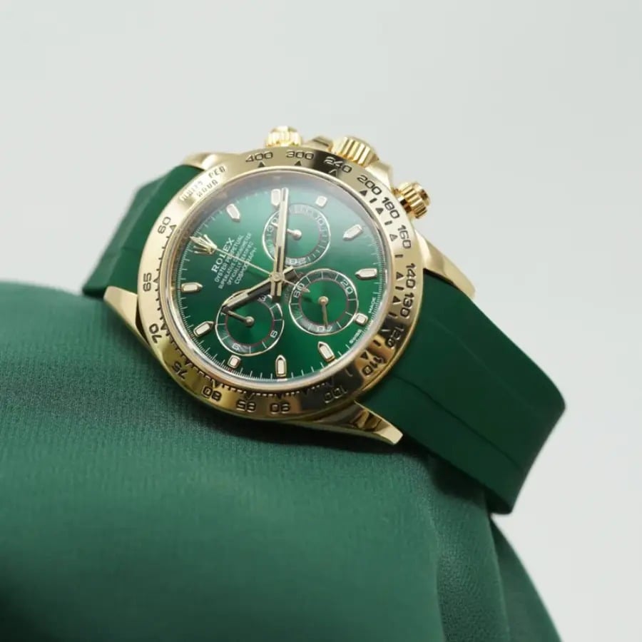 The vibrant green color adds a bold yet refined touch, making it a standout option for those who want to give their Daytona a more distinctive and energetic look. When paired with a compatible clasp, it ensures reliable fastening and all-day comfort.