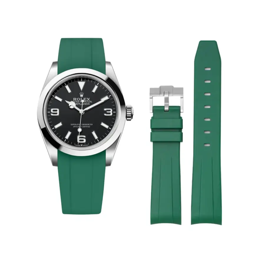 The Green Rubber Strap for Rolex Explorer I is a premium replacement designed to enhance comfort and versatility while maintaining the rugged DNA of the Explorer collection. Crafted from high-quality flexible rubber, it offers excellent durability, resistance to daily wear, and long-lasting performance, making it ideal for both outdoor use and everyday wear.
